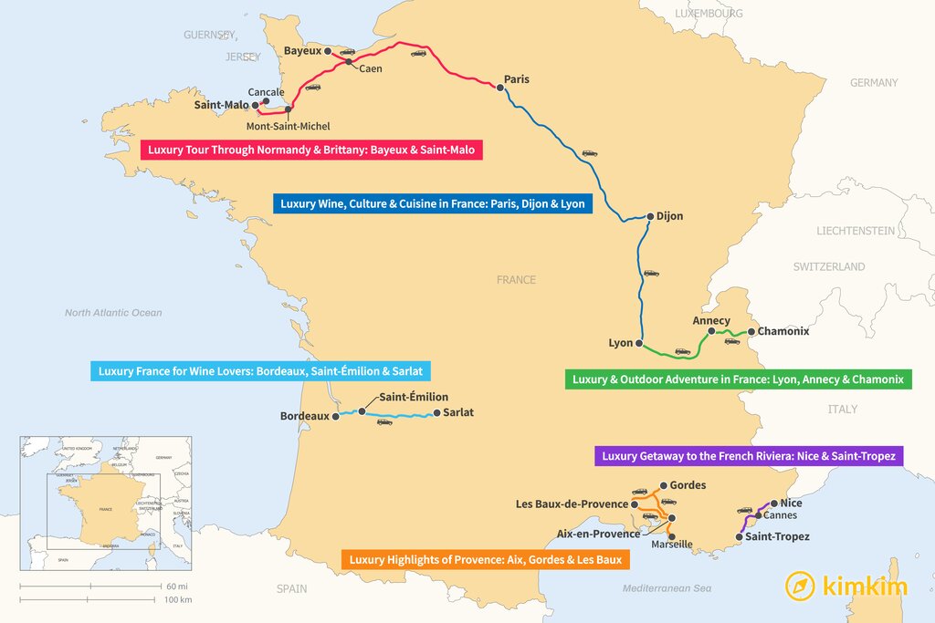 Map of 1 Week in France – 6 Luxury Itinerary Ideas
