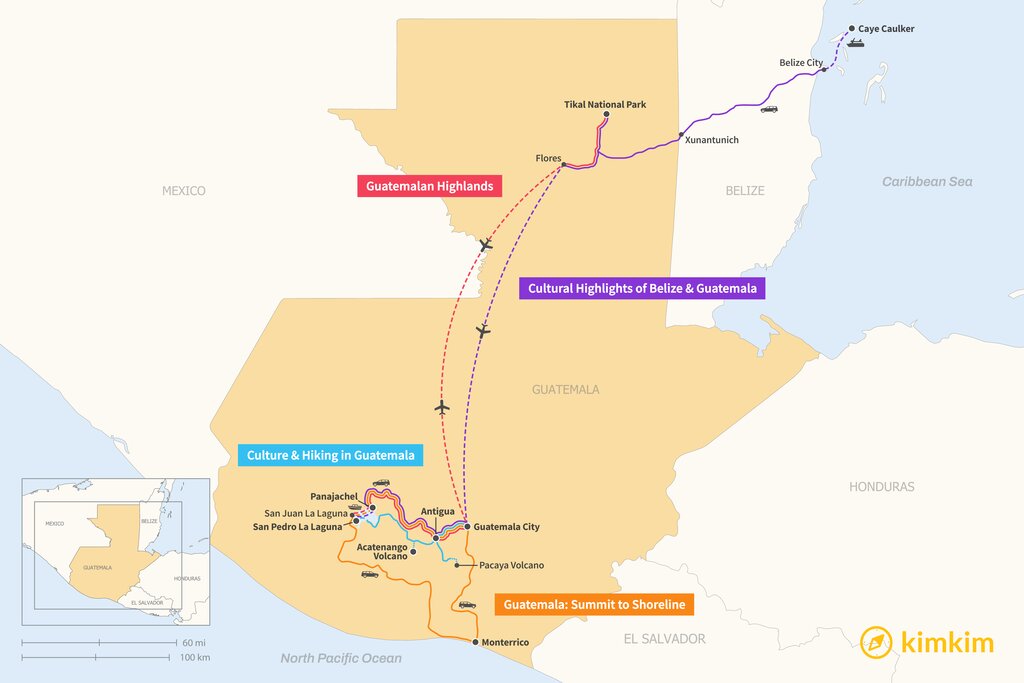 Map of 1 Week in Guatemala – 4 Unique Itinerary Ideas