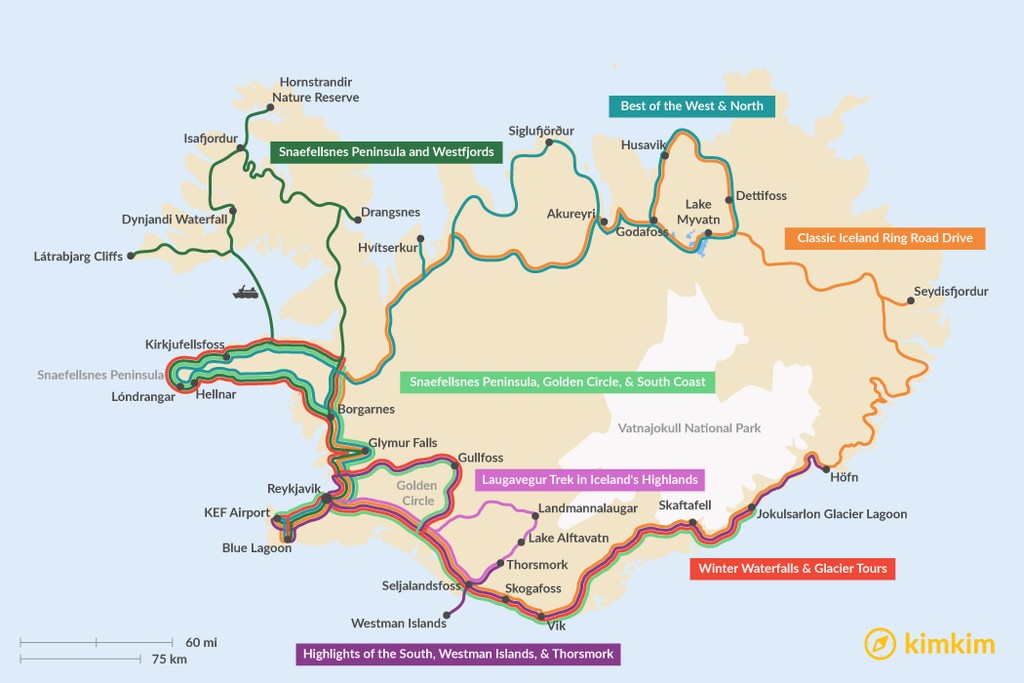 Map of 1 Week in Iceland – 7 Unique Itinerary Ideas