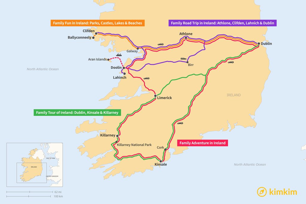 Map of 1 Week in Ireland – 4 Family-Friendly Itinerary Ideas