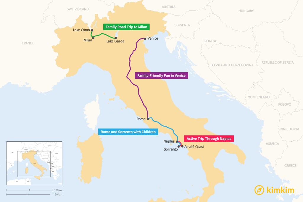 Map of 1 Week in Italy – 4 Family-Friendly Itineraries