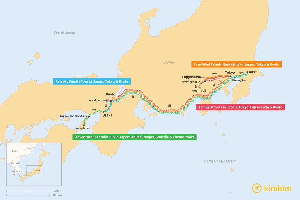 Map of 1 Week in Japan – 4 Family-Friendly Itinerary Ideas