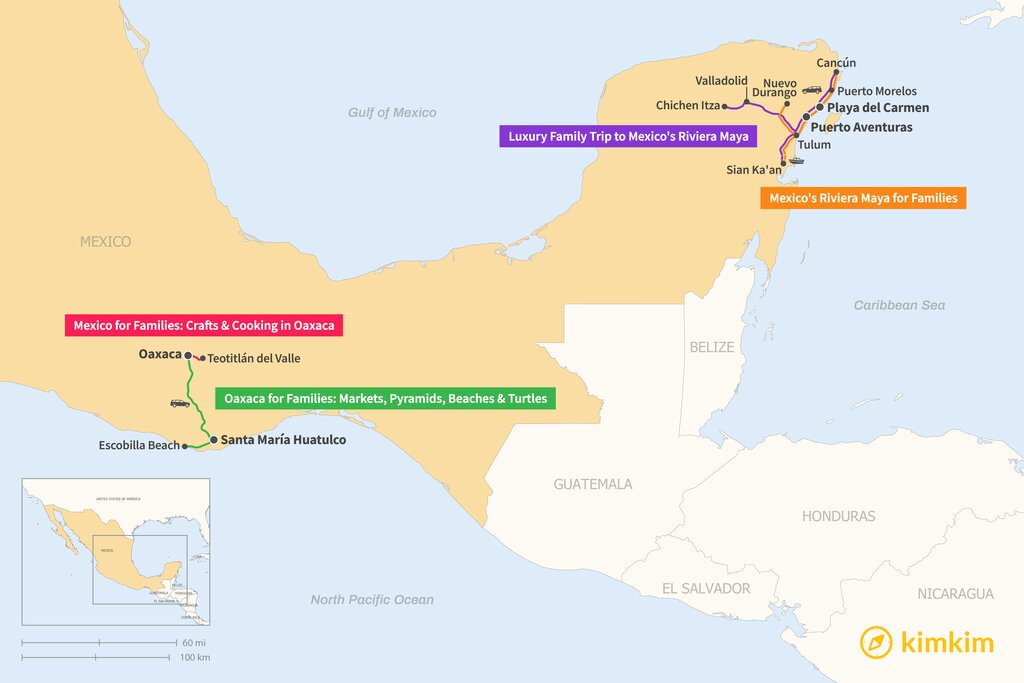 Map of 1 Week in Mexico – 4 Family-Friendly Itinerary Ideas