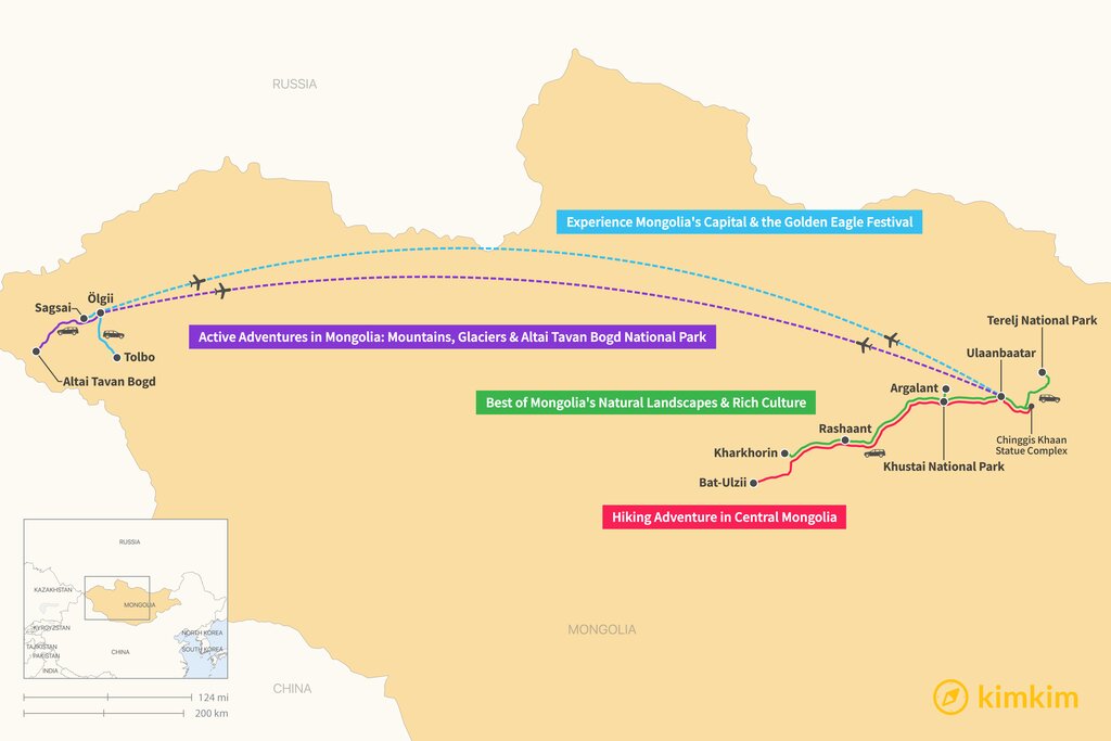Map of 1 Week in Mongolia – 4 Unique Itinerary Ideas