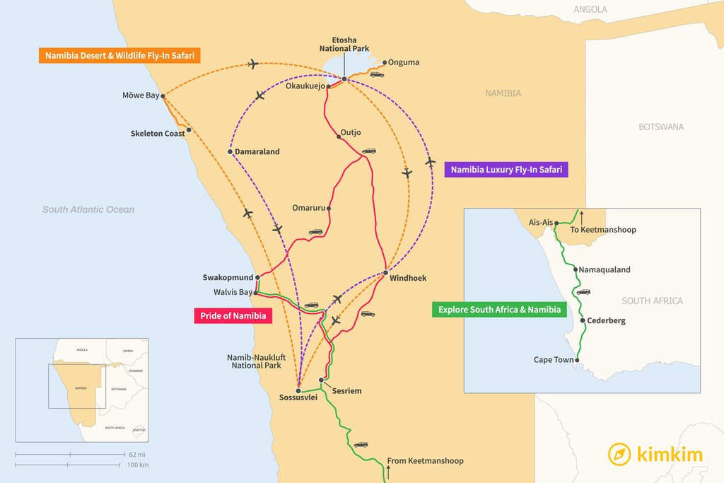 Map of 1 Week in Namibia – 4 Unique Itinerary Ideas