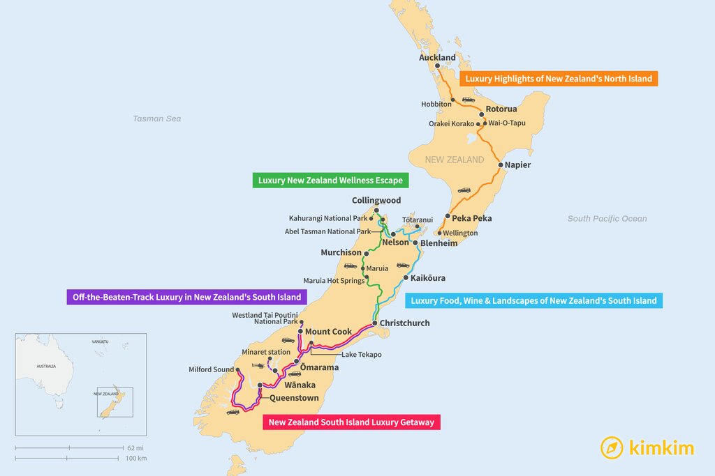 Map of 1 Week in New Zealand – 5 Luxury Itinerary Ideas