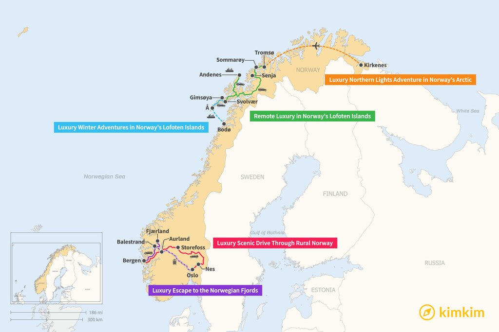 Map of 1 Week in Norway – 5 Luxury Itinerary Ideas