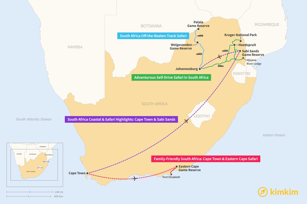 Map of 1 Week in South Africa – 4 Safari Itinerary Ideas