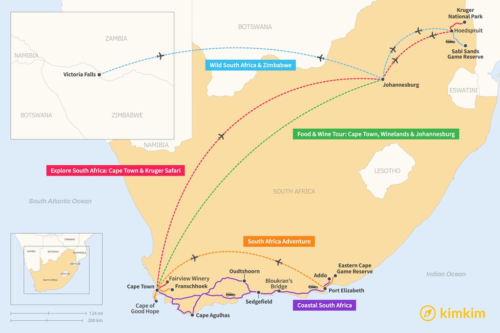 Map of 1 Week in South Africa – 5 Unique Itinerary Ideas