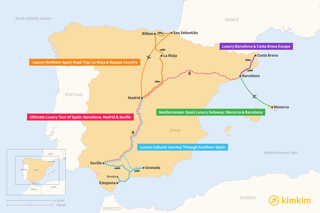 Map of 1 Week in Spain – 5 Luxury Itinerary Ideas