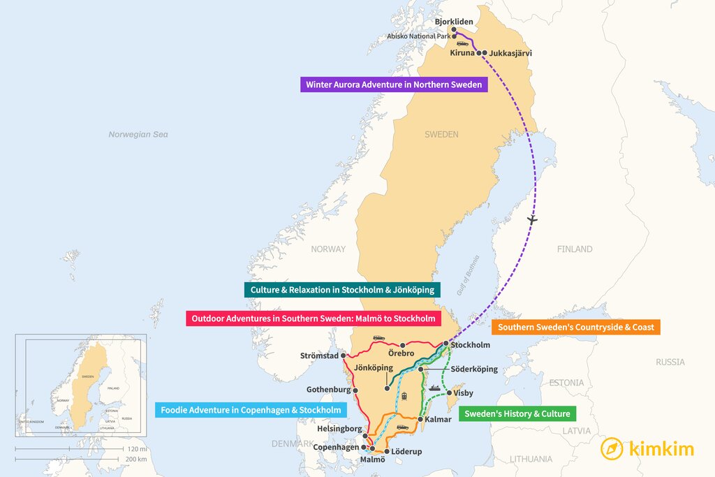 Map of 1 Week in Sweden – 6 Unique Itinerary Ideas