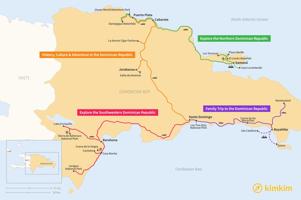 Map of 1 Week in the Dominican Republic – 4 Unique Itinerary Ideas