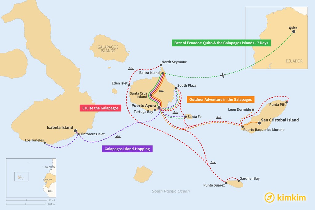 Map of 1 Week in the Galápagos Islands – 4 Unique Itinerary Ideas