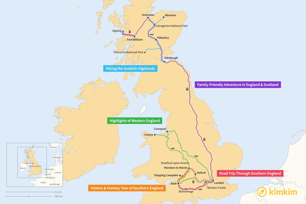 Map of 1 Week in The United Kingdom – 5 Unique Itinerary Ideas