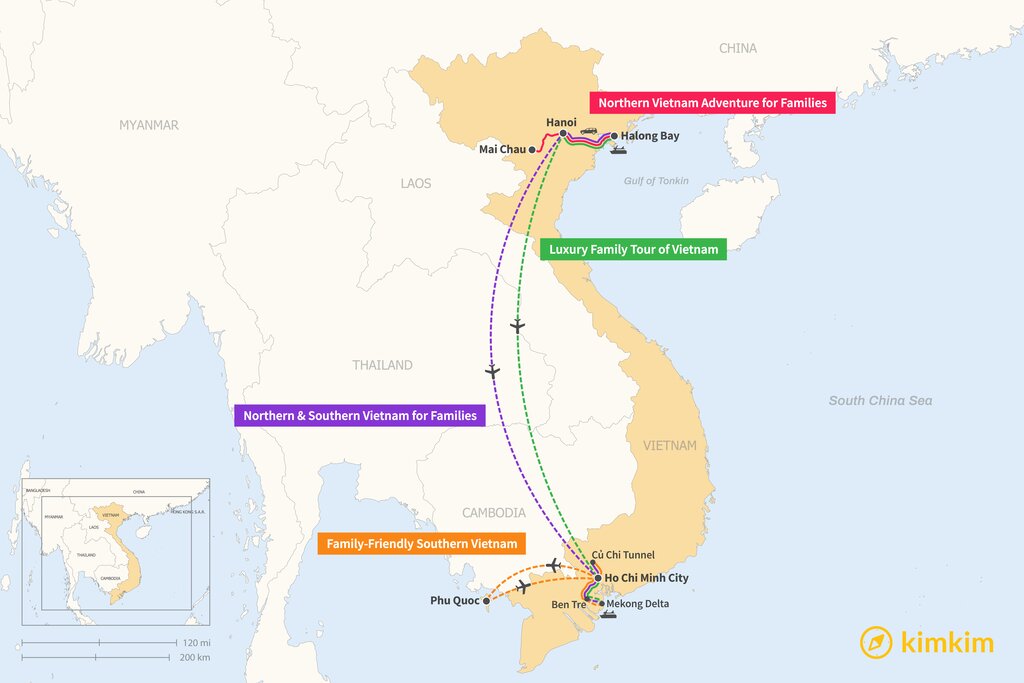 Map of 1 Week in Vietnam – 4 Family-Friendly Itinerary Ideas