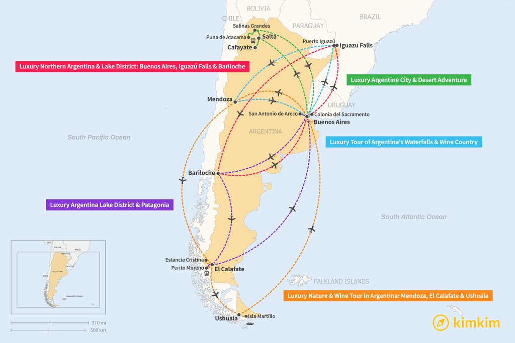 Map of 10 Days in Argentina – 5 Luxury Itinerary Ideas