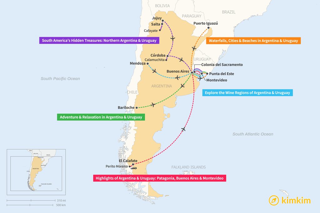 Map of 10 Days in Argentina & Uruguay – 5 Unique Itinerary Ideas