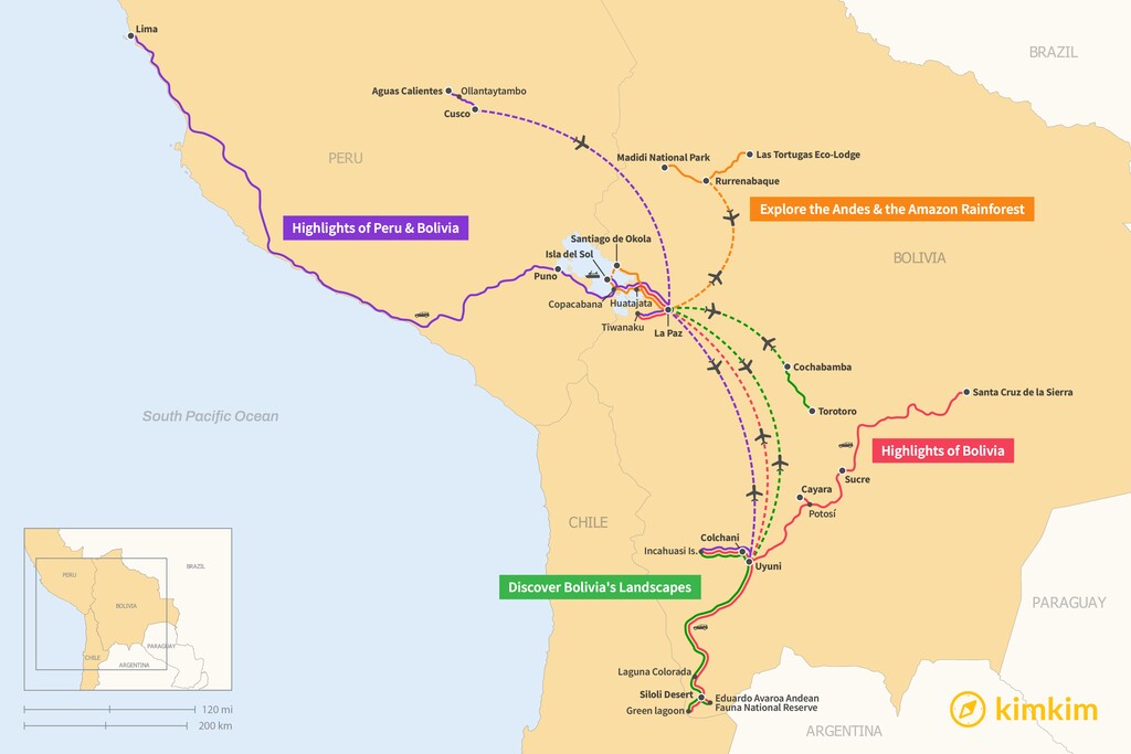 Map of 10 Days in Bolivia – 4 Unique Itinerary Ideas