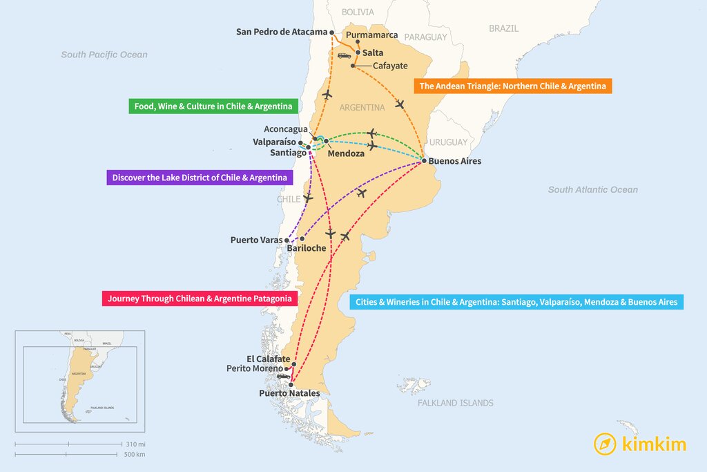 Map of 10 Days in Chile & Argentina – 5 Unique Itinerary Ideas