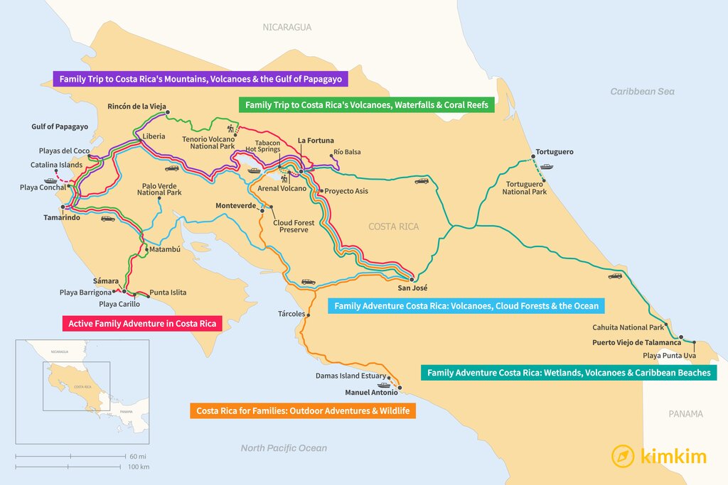 Map of 10 Days in Costa Rica – 6 Family-Friendly Itinerary Ideas