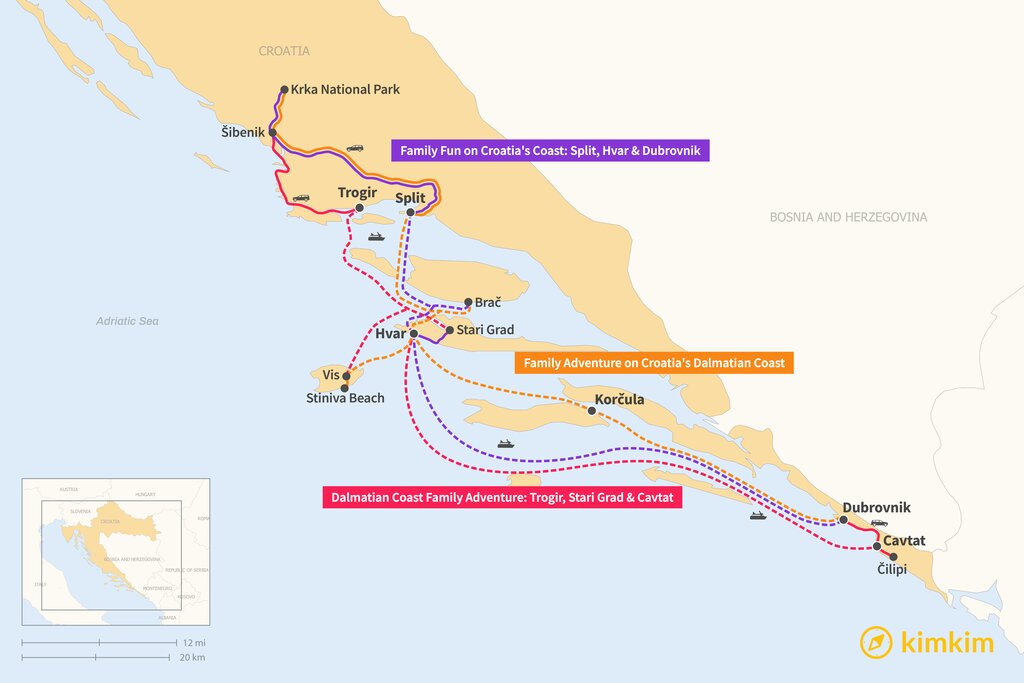 Map of 10 Days in Croatia – 3 Family-Friendly Itinerary Ideas