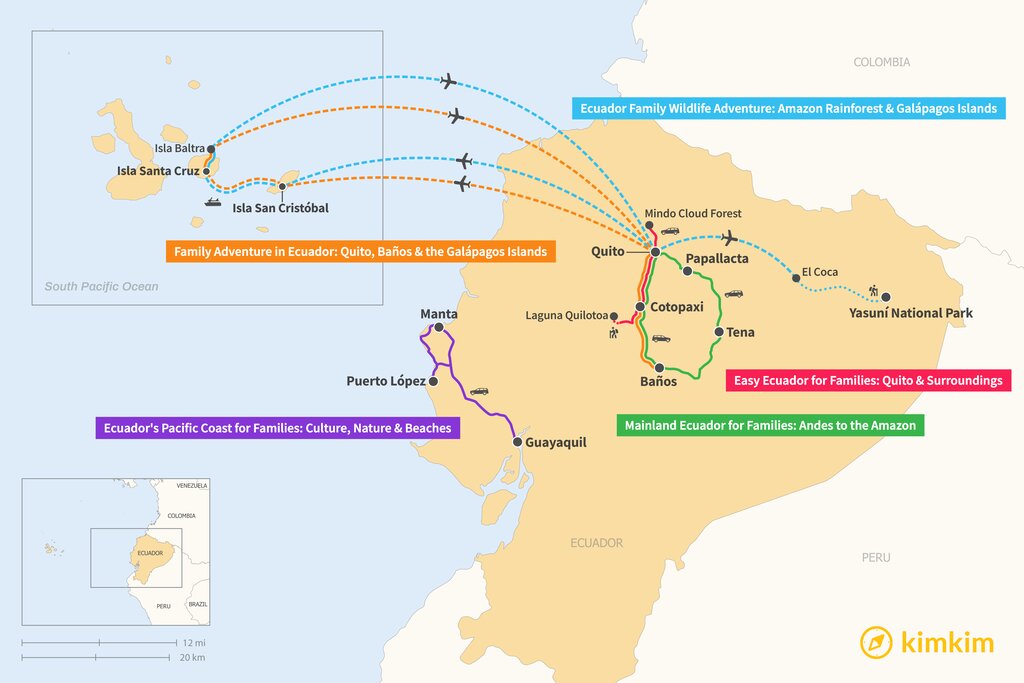 Map of 10 Days in Ecuador – 5 Family-Friendly Itinerary Ideas