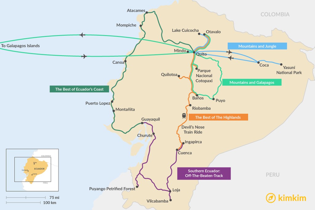 Map of 10 Days in Ecuador – 5 Unique Itinerary Ideas