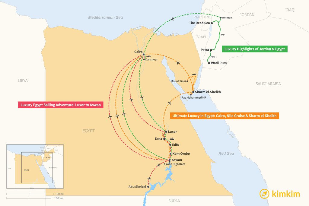 Map of 10 Days in Egypt – 3 Luxury Itinerary Ideas