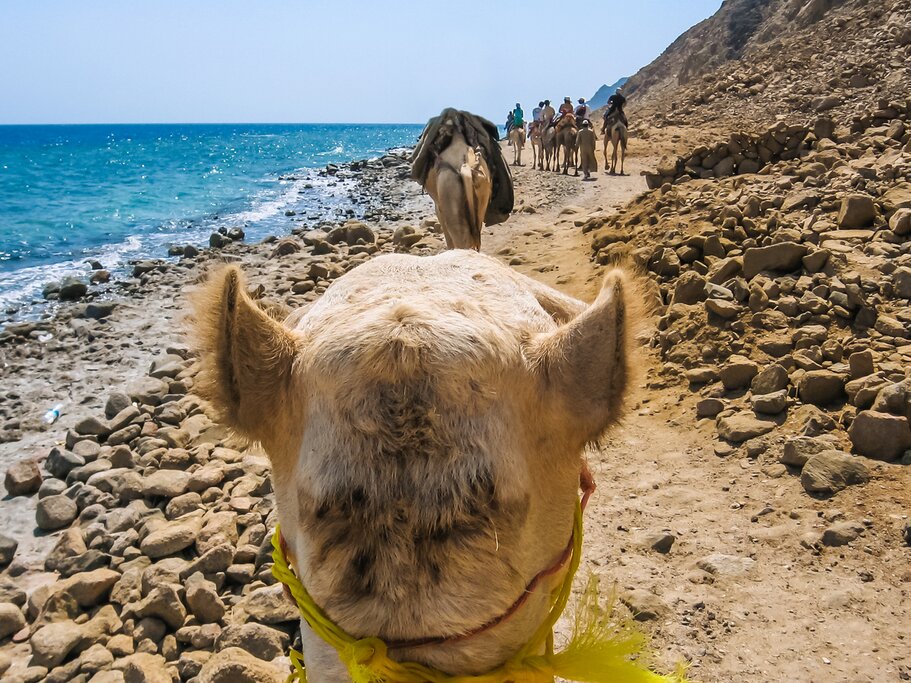 After arriving in Cairo and spending your first evening relaxing, you’ll get straight to the sightseeing the next morning. Start with a day trip to see the Giza Pyramids and the Great Sphinx, followed by a full-day city tour, complete with stops at the Mosque-Madrassa of Sultan Hassan and Al-Azhar. Then, on Day 4, you’ll head out of the city to Saint Catherine’s Monastery, stopping to visit Moses Springs and the Tomb of the Prophet. Delight in a memorable night within the religious landmark and embark on a dawn hike (or camel ride) up Mount Sinai before transferring to the coastal resort city of Dahab.