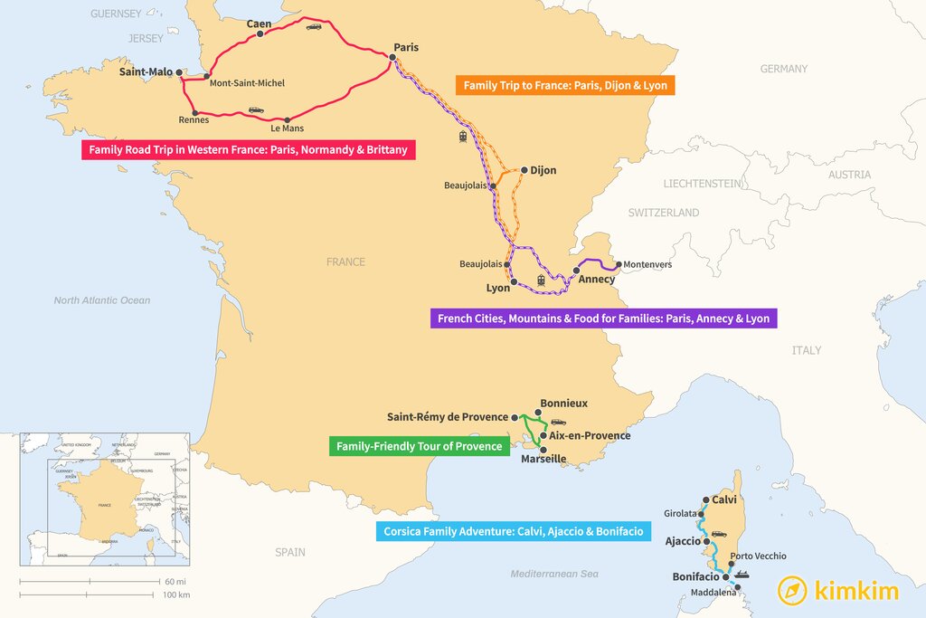 Map of 10 Days in France – 5 Family-Friendly Itinerary Ideas