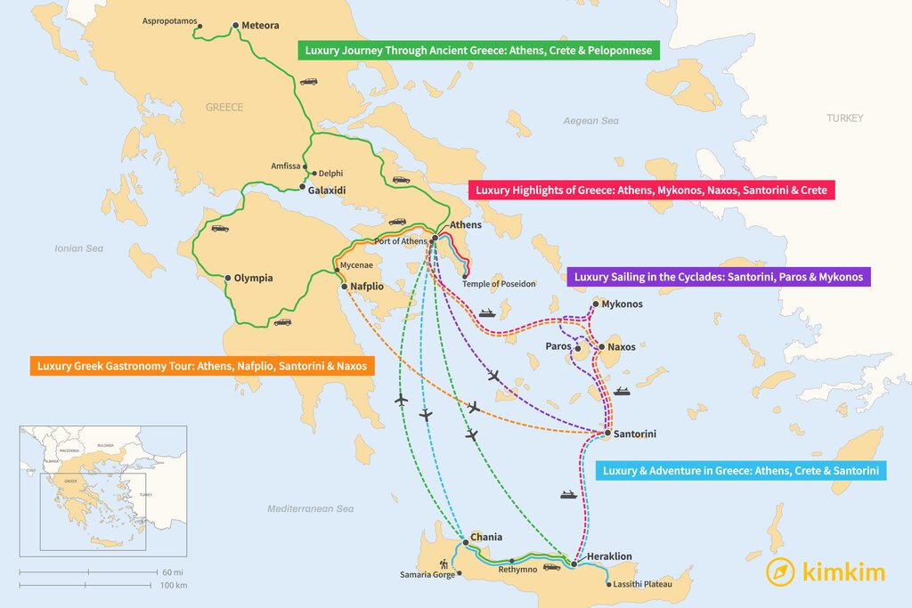 Map of 10 Days in Greece – 5 Luxury Itinerary Ideas
