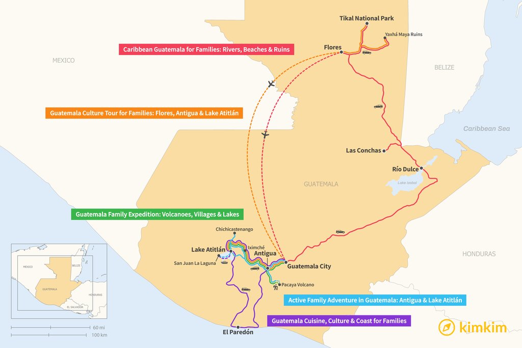 Map of 10 Days in Guatemala – 5 Family-Friendly Itinerary Ideas