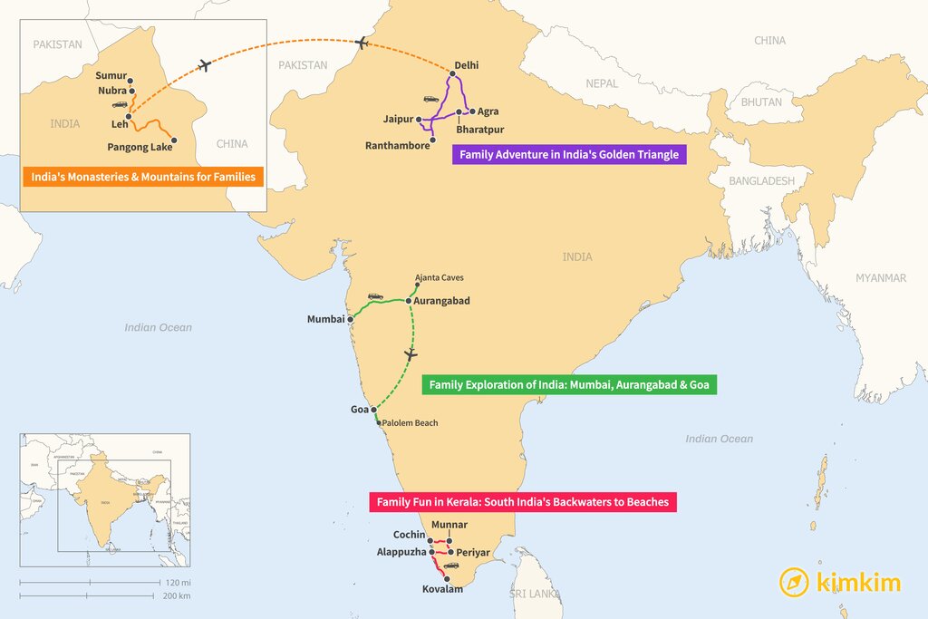 Map of 10 Days in India – 4 Family-Friendly Itinerary Ideas