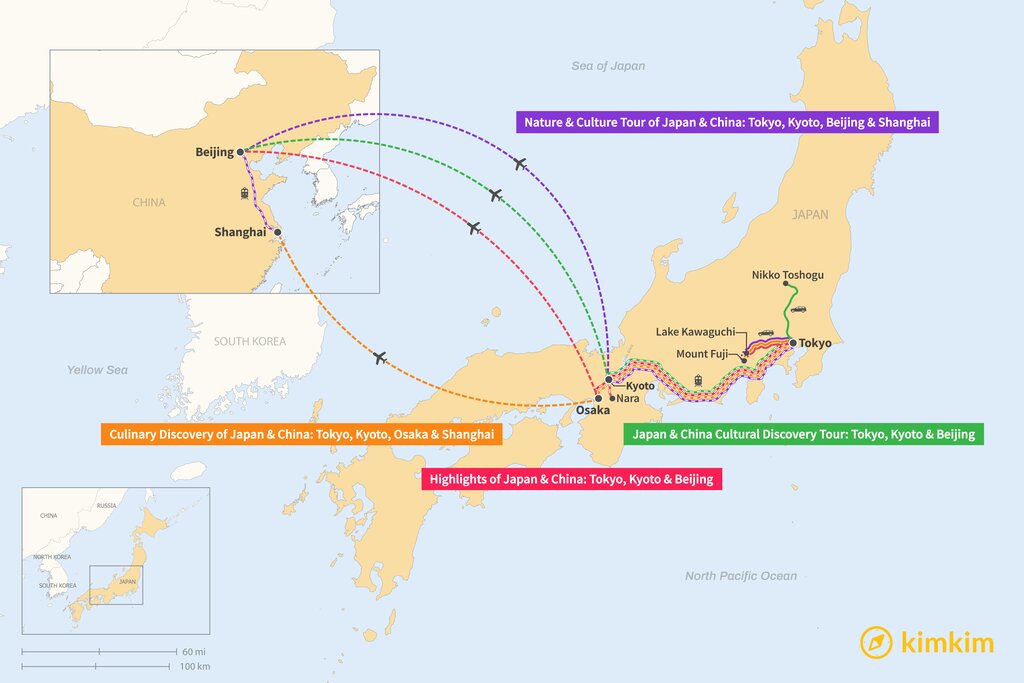 Map of 10 Days in Japan & China – 4 Unique Itinerary Ideas