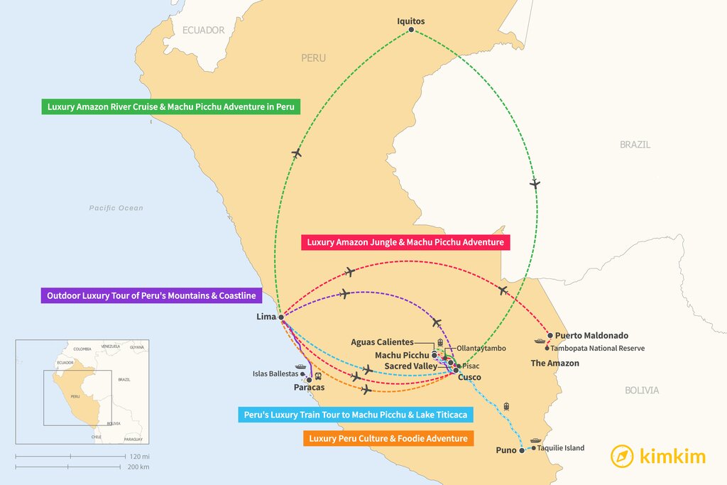 Map of 10 Days in Peru – 5 Luxury Itinerary Ideas