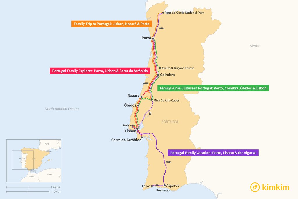 Map of 10 Days in Portugal – 4 Family-Friendly Itinerary Ideas