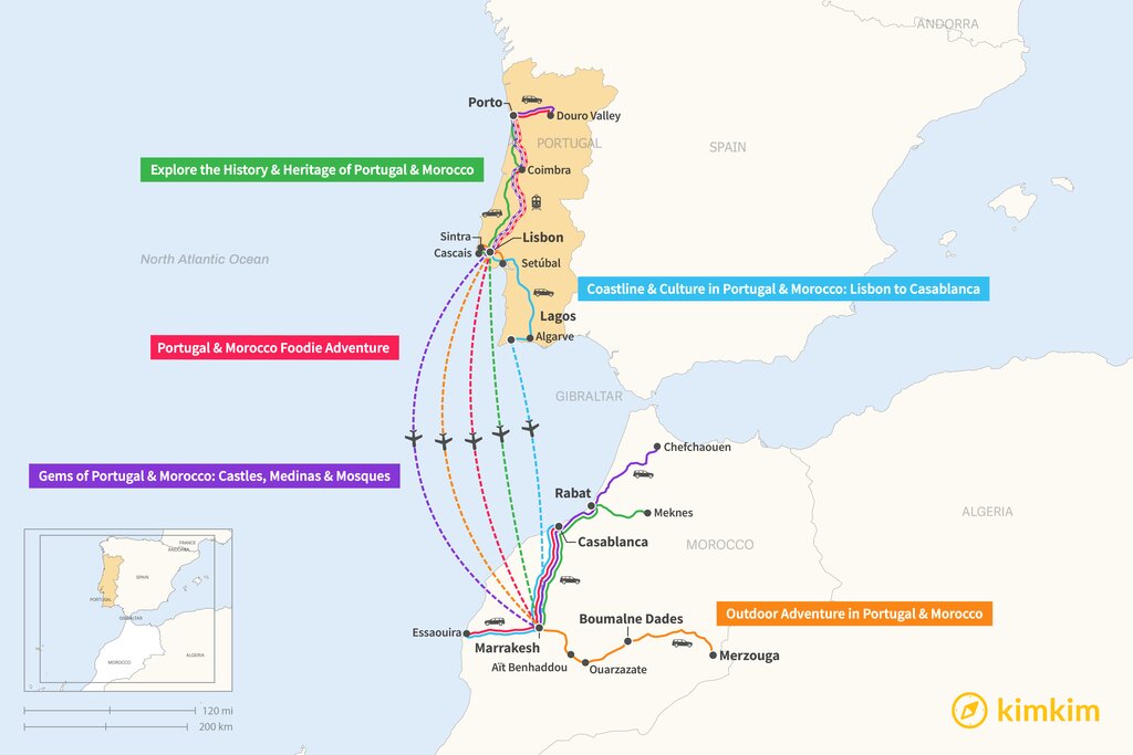 Map of 10 Days in Portugal & Morocco – 5 Unique Itinerary Ideas