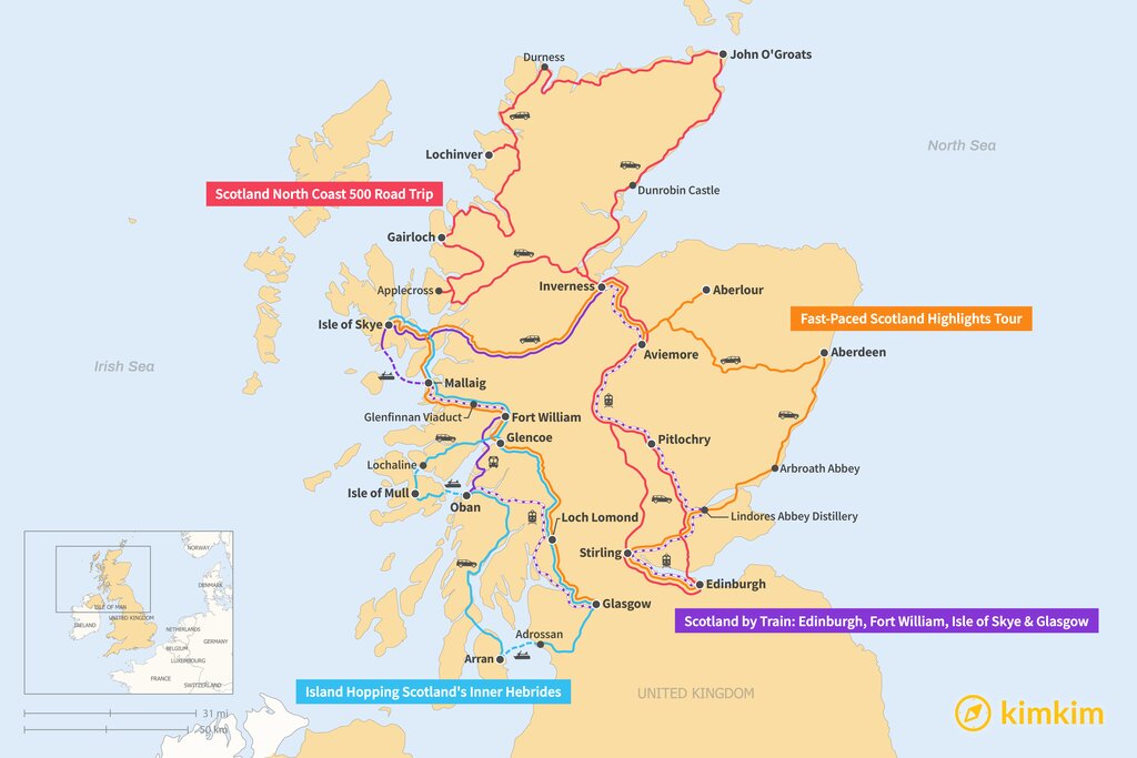 Map of 10 Days in Scotland – 4 Unique Itinerary Ideas