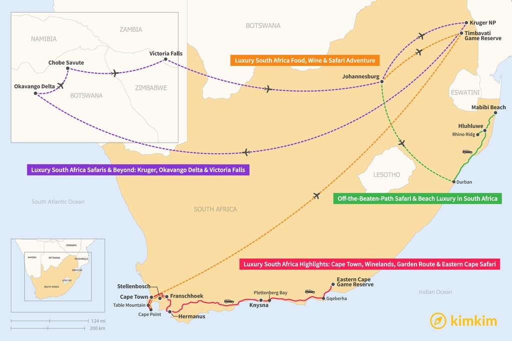 Map of 10 Days in South Africa – 4 Luxury Itinerary Ideas