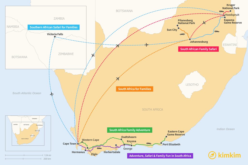 Map of 10 Days in South Africa – 5 Family-Friendly Itinerary Ideas
