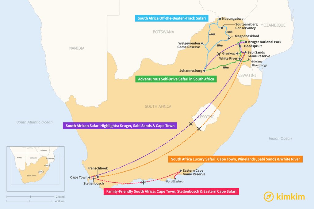 Map of 10 Days in South Africa – 5 Safari Itinerary Ideas