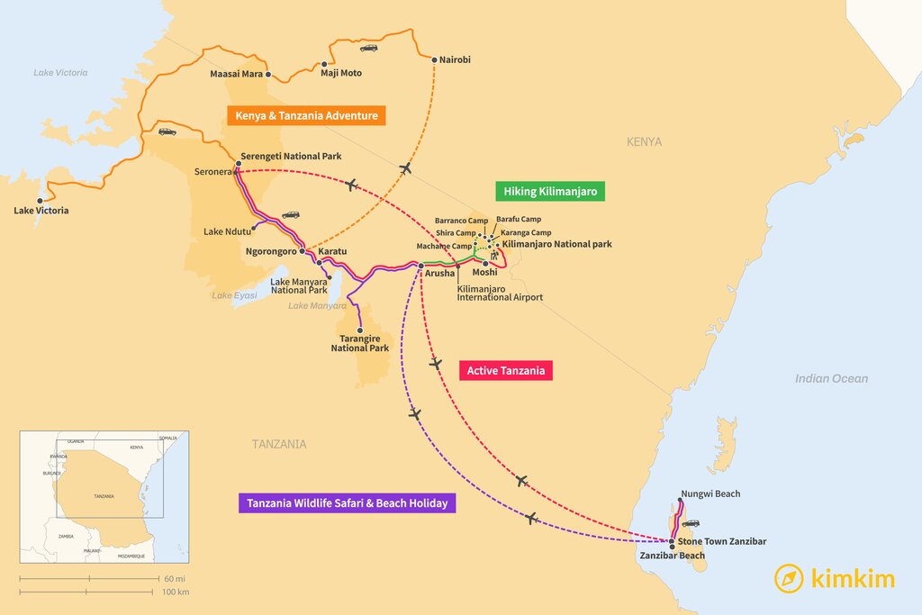 Map of 10 Days in Tanzania – 4 Unique Itinerary Ideas