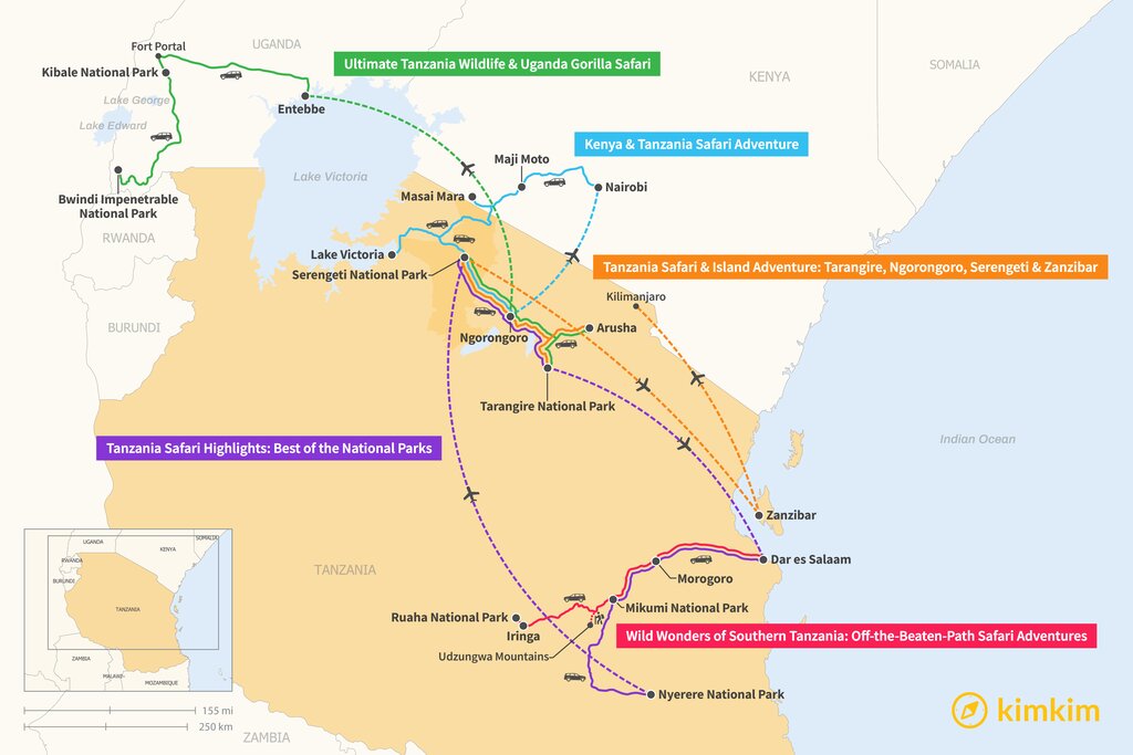 Map of 10 Days in Tanzania – 5 Safari Itinerary Ideas