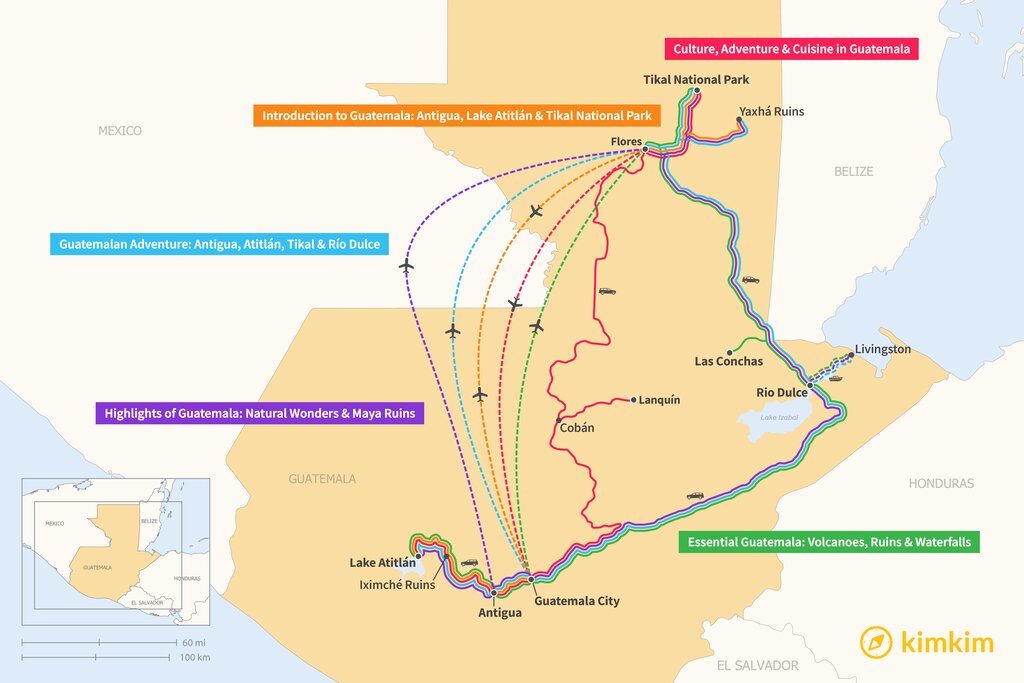 Map of 11 Days in Guatemala – 5 Unique Itinerary Ideas