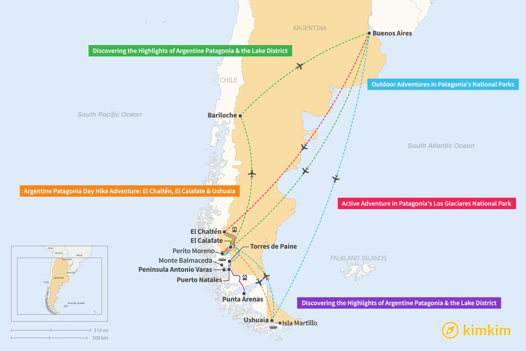 Map of 11 Days in Patagonia – 5 Unique Itinerary Ideas