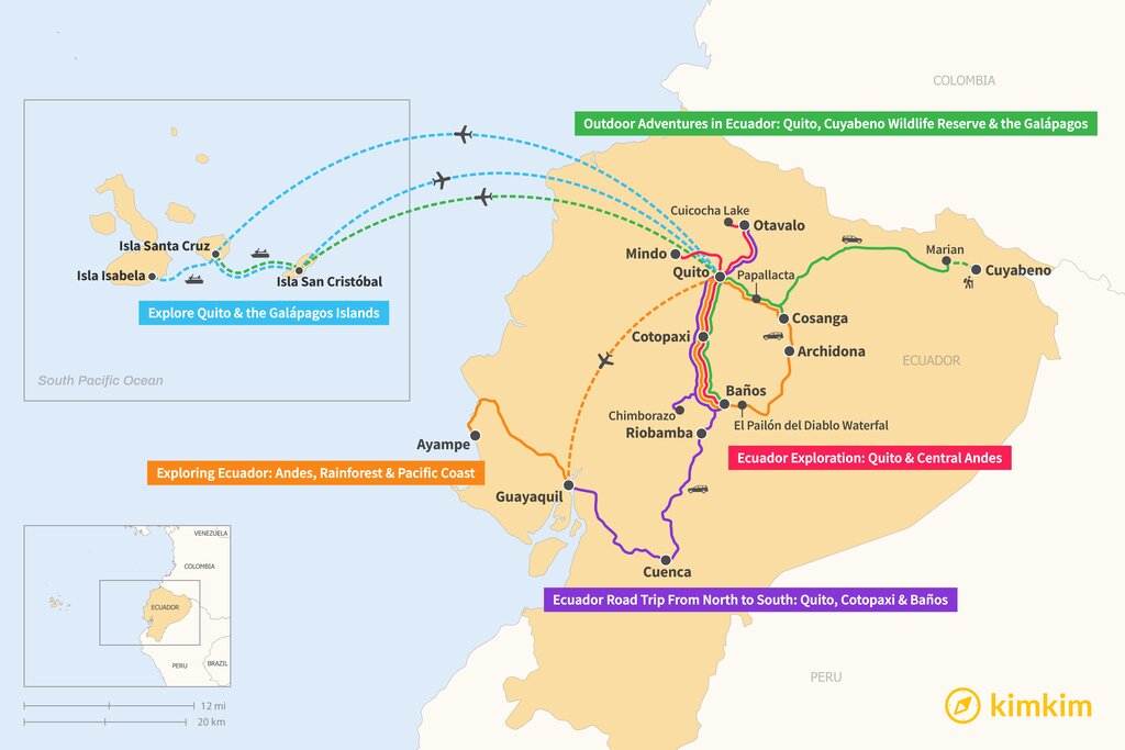 Map of 12 Days in Ecuador – 5 Unique Itinerary Ideas