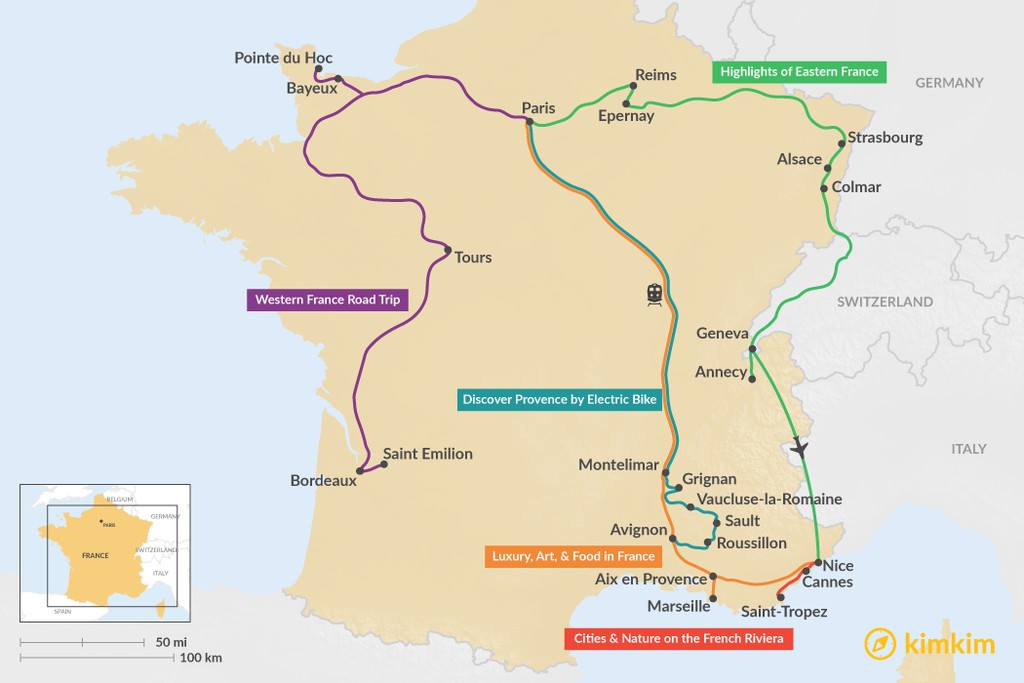 Map of 12 Days in France – 7 Unique Itinerary Ideas
