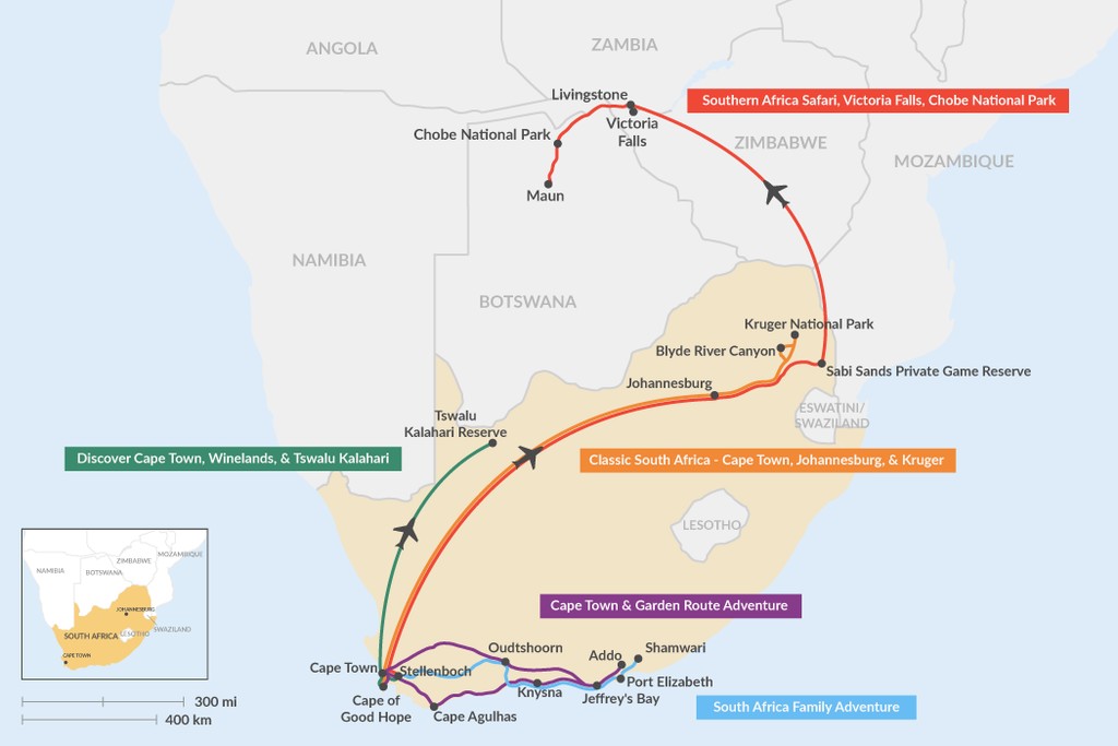Map of 12 Days in South Africa – 5 Unique Itinerary Ideas
