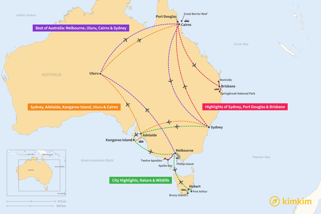 Map of 13 Days in Australia – 4 Unique Itinerary Ideas