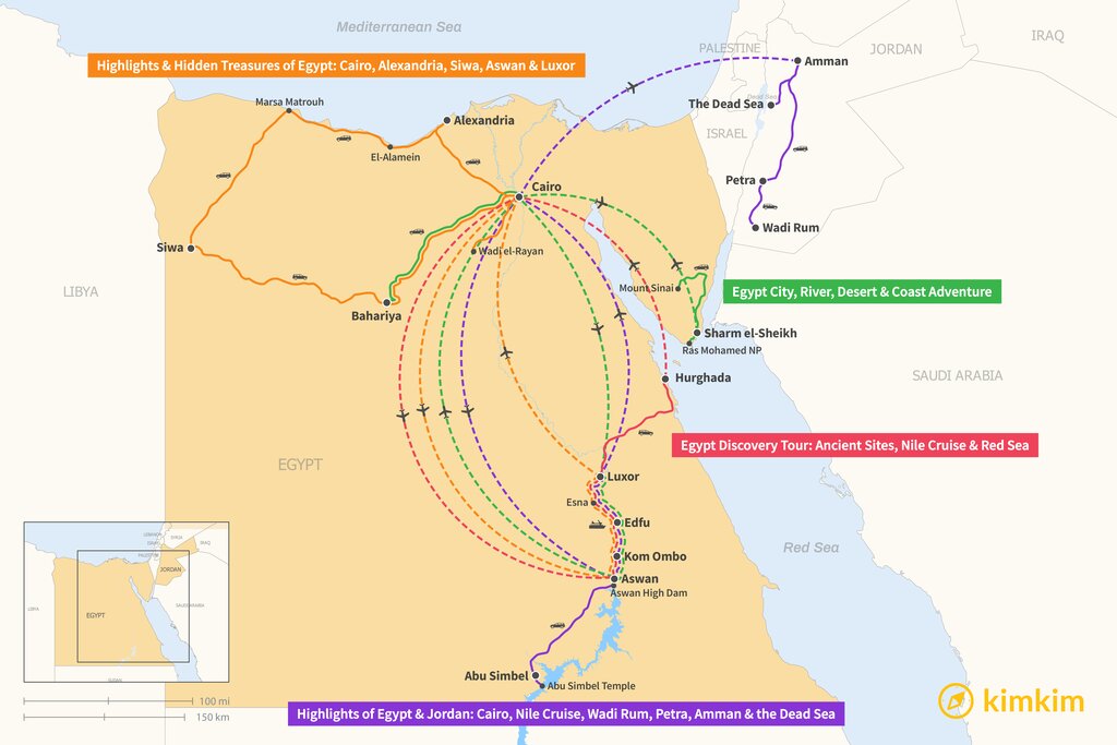 Map of 13 Days in Egypt – 4 Unique Itinerary Ideas